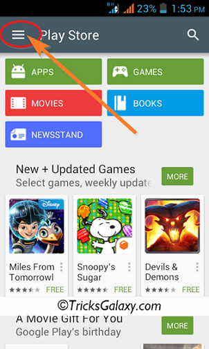 - Open Google Play store app On Your Android and swipe from left to right in the app.